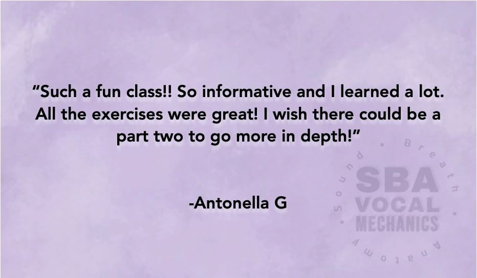 First through a series of short lectures, visuals, and group exercises Coach Sarah will educate the group on anatomy, breath, and sound. She will also cover: