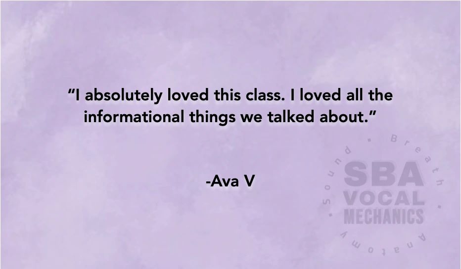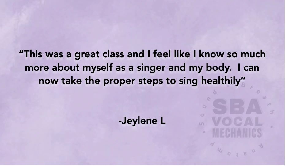 SBA Vocal Mechanics is designed to give singers a greater understanding of how their voice works as an instrument by teaching the science behind singing. This educational and interactive seminar focuses on 3 main principals: